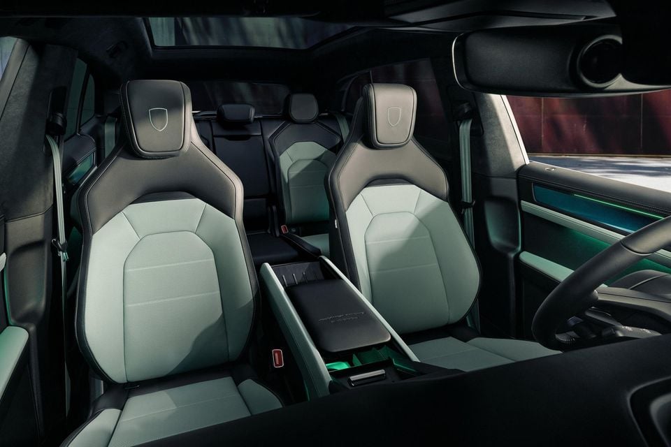 Porsche today also announced an optional new Interior Style Package from its Exclusive Manufaktur department for the entire Cayenne Electric lineup, at the heart of which is two-tone leather upholstery in Black and Delgada Green to match the new Mystic Green Metallic exterior paint.