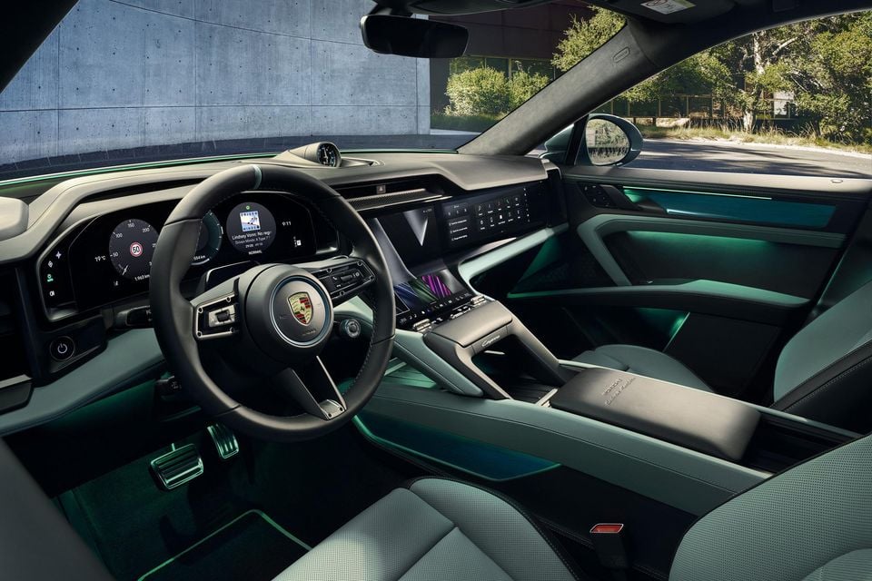 The S may lack the Turbo’s more aggressive front-end design with contrasting black elements, matrix LED headlights and vertically stacked active ‘aeroblades’ on the rear bumper, but carryover features include frameless door windows that sit flush with the B-pillar, a 14.25-inch curved OLED driver’s instrument cluster, and a 12.5-inch touchscreen infotainment system called the Flow Display.