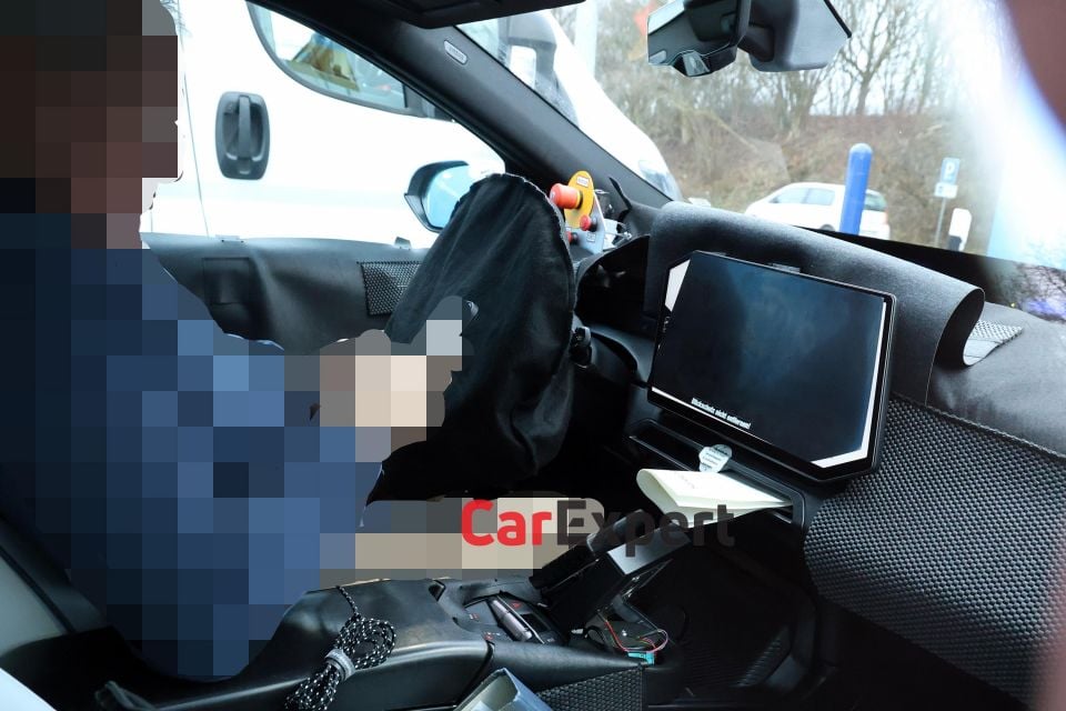 Our spy photography agency also got a peek inside the cabin. While most of the interior is covered up, we can see the iX1 uses the same parallelogram-shaped floating touchscreen as the iX3. Like its bigger sibling, the iX1’s interior seems largely devoid of buttons.