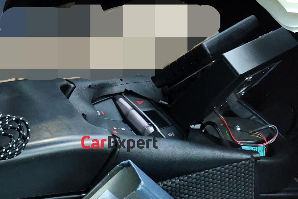 The only physical switches visible are in the centre tunnel, and they control the transmission, electric parking brake, hazard lights, and demister.
