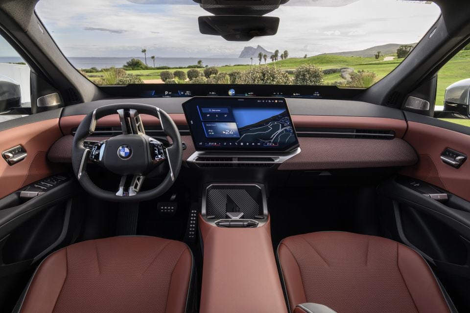 A huge 43.3-inch BMW Panoramic Vision display sweeps across the base of the windscreen, with driving information projected in the driver’s line of sight. The content on the centre and opposite side of the display can be configured using the touchscreen.