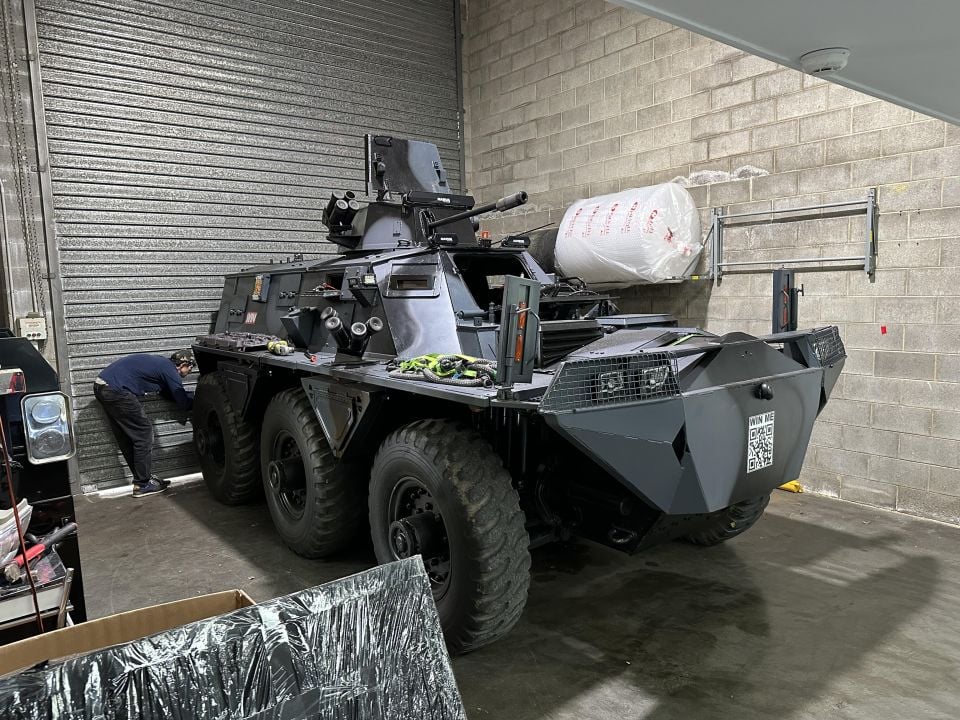 Why are they bumbling thieves? Well, they somehow manage to start the armoured personnel carrier – explained by the owner in an Instagram post as being operated without a key – and then run into one of their thief friends in the process.