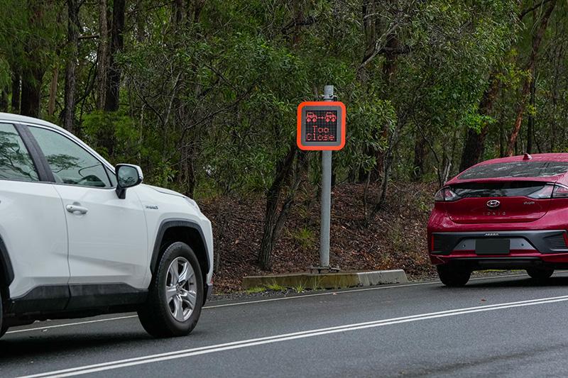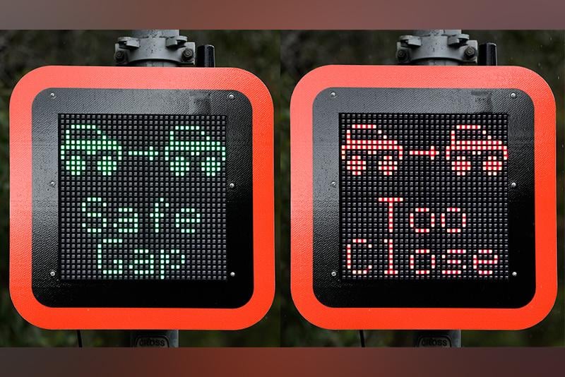 The new tailgating awareness monitors function like existing Speed Awareness Monitors – signs with digital readouts of vehicles’ speed, which read ‘Slow for SAM’ – with electronic message boards installed close to the detection sites.