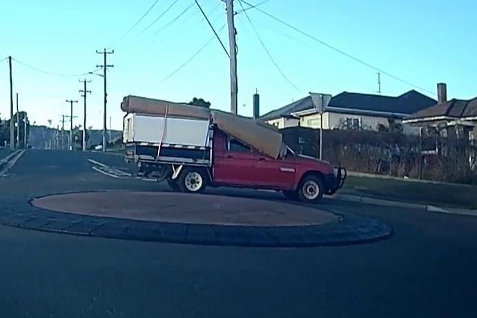An image shared by Dash Cam Owners Australia – naturally, taken with someone’s dashcam – shows a Mitsubishi Triton driver who has chosen an ill-advised way to carry what appear to be carpets.