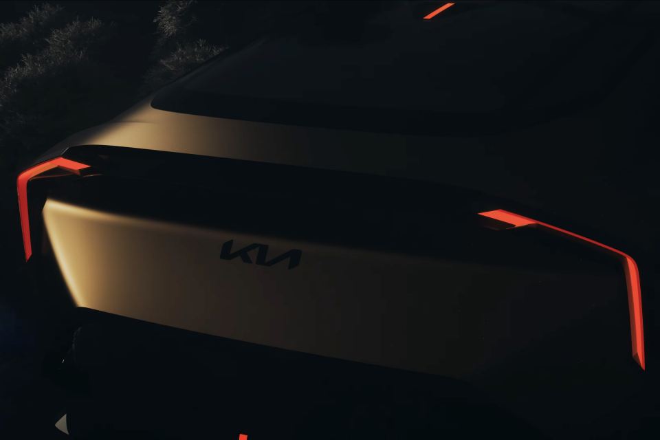 Kia has dropped a teaser for an aggressively styled concept car, and its apparent size suggests this could be the on-again, off-again all-electric replacement for the Stinger sports sedan.