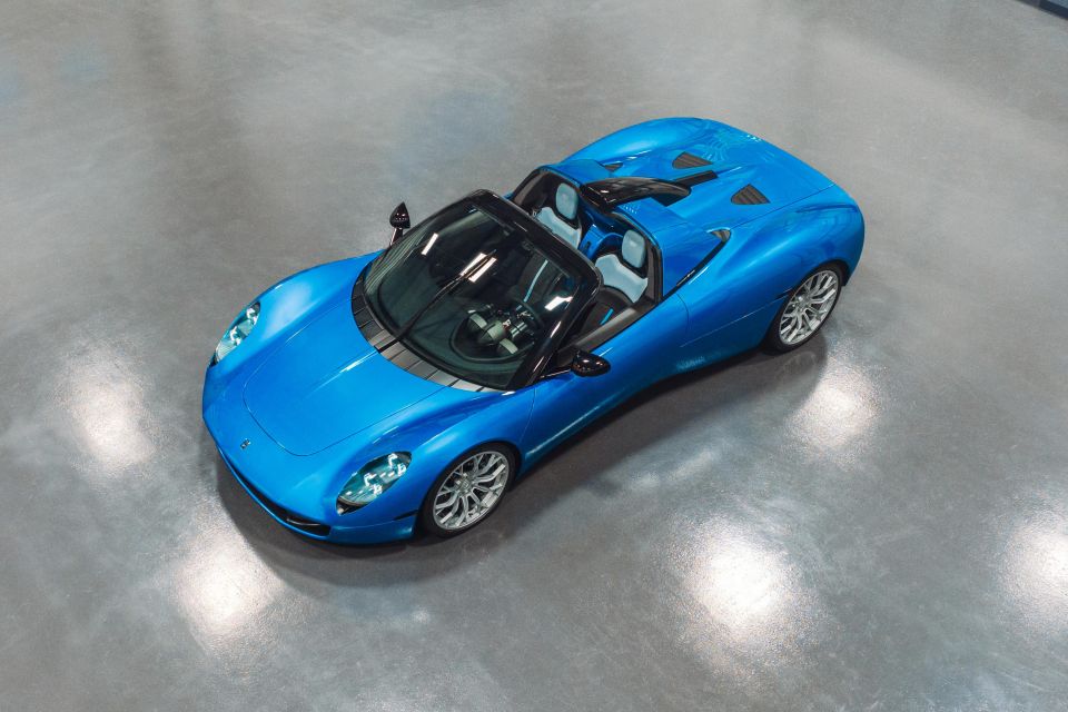 The two-seat roadster was designed alongside its coupe counterpart, the T.33, and retains the same aerodynamics with an active rear spoiler and classic 1960s-inspired shape.