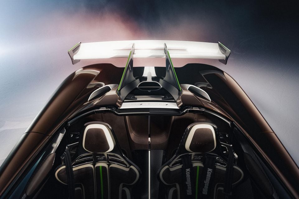 Behind the passenger cell is an upgraded version of the Jesko’s 5.0-litre twin-turbo V8. Thanks to a revised calibration, and reworked airflow and cooling systems, when using regular unleaded the V8 now makes a mammoth 969kW of power at 7800rpm, or 1212kW if it’s being fed E85 fuel.
