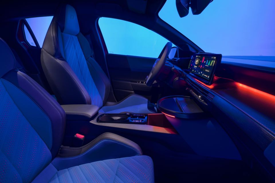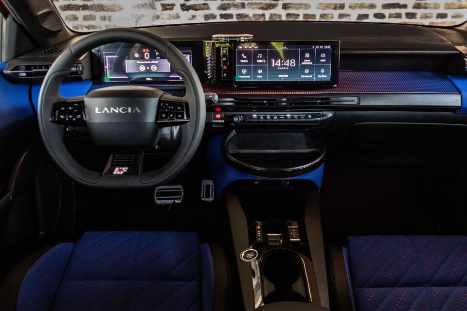 On the inside you’ll find Econyl sport seats supposedly inspired by the Delta Evoluzione, perforated leather for the steering wheel, aluminium pedals, revised graphics for the instrumentation and infotainment screens, and a dashboard top that fades from blue to orange and back again.