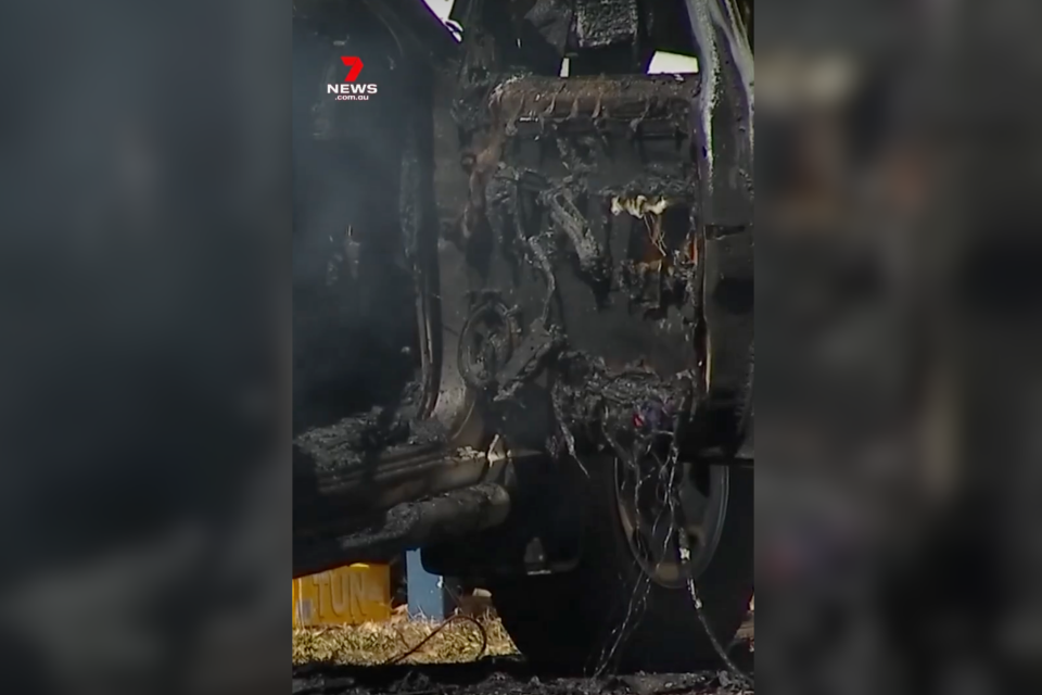 7News Townsville reports the Nissan Pathfinder was burnt to a crisp, with video showing firefighters and police assessing the smouldering wreckage.
