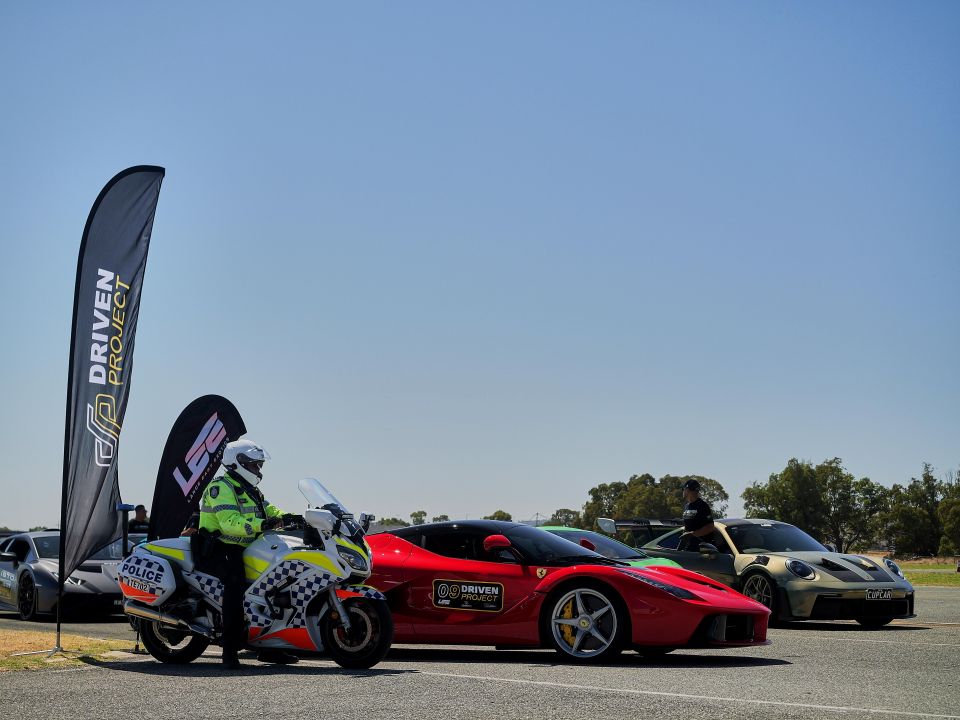 Held at Driver Risk Management’s racetrack facility in Perth, the event featured a dazzling convoy of exotic supercars, including Lamborghinis, Ferraris, and McLarens — many of them supplied by Laurence Escalante’s private LEE Collection.