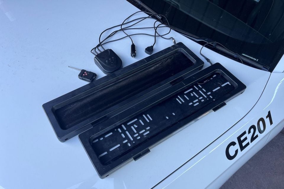 “The driver offered many excuses for having the device fitted to his vehicle, such as having no other way to attach his registration plates, and to cover up imperfections in the bright blue vinyl wrap covering his vehicle,” Traffic and Highway Patrol Command said in its Facebook post.