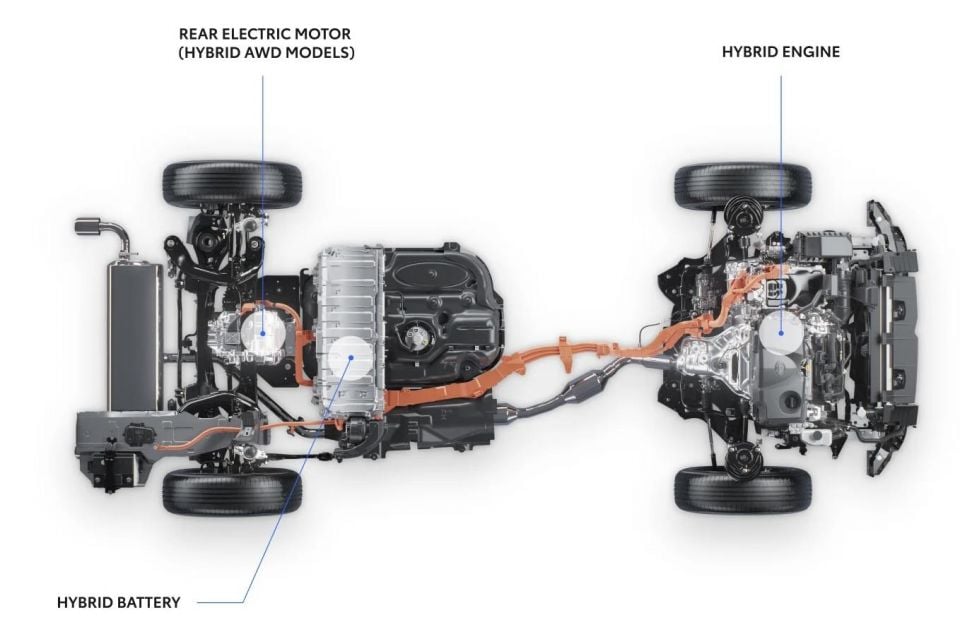 The Toyota RAV4 is now exclusively a hybrid-only model, and all-wheel drive versions pair a 2.5-litre naturally aspirated petrol engine with a continuously variable automatic transmission (CVT).