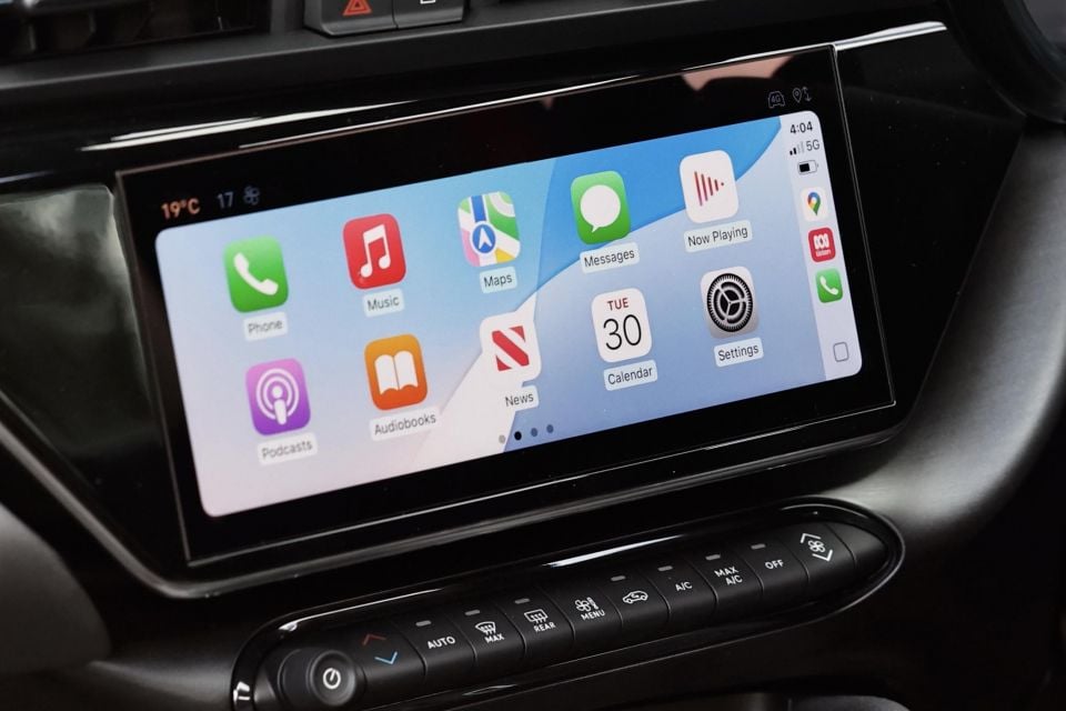 The screen also sits quite low on the dashboard, which means you have to look down from the road ahead to see it. Navigating the system’s native menus can also be confusing, as button shortcuts for the home screen and vehicle settings are initially not visible.