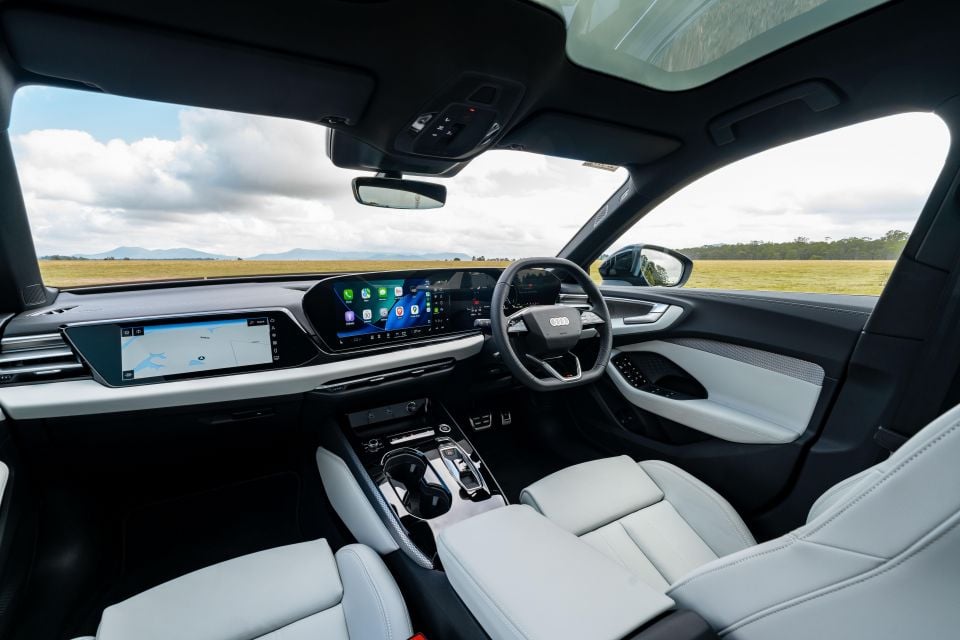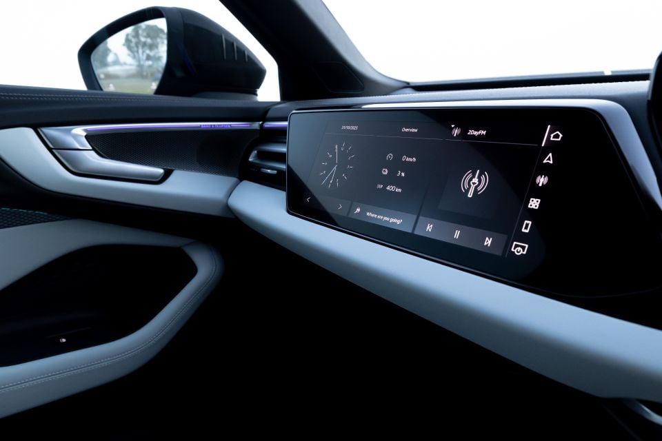 That said, you can really open up the cabin with the exxy optional panoramic glass roof ($4990), which comes with what Audi calls ‘switchable transparency’, basically utilising similar tech to the Porsche Taycan whereby a liquid crystal sandwiched between two glass panels can be turned clear or opaque using electricity.