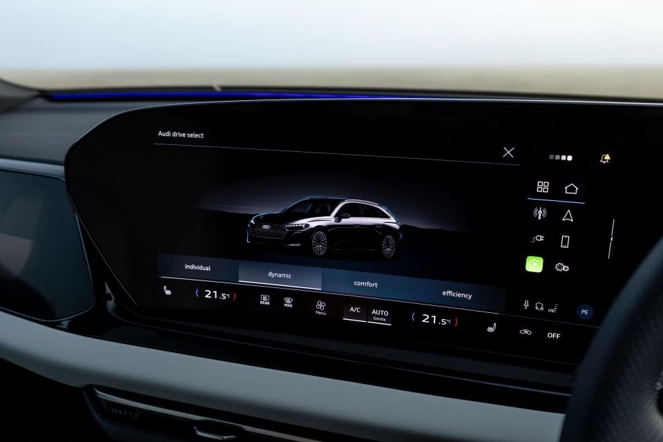 The standard surround-camera system is helpful though, given the high shoulder lines and thick rear pillars. It makes slotting this 4.83m-long, 1.86m-wide Audi into tight parking spaces that little bit easier.
