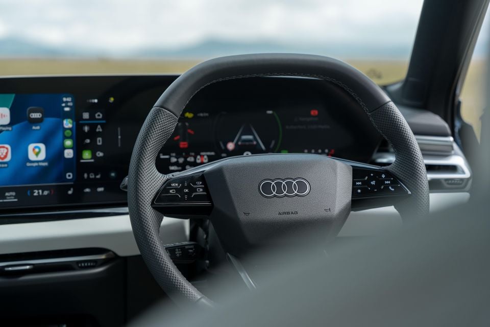 I’m still not a fan of the new multifunction steering wheel controls, which feel like a halfway house between Audi’s old tactile physical buttons and the more fiddly touch-capacitive controls used in other VW Group models. They’re not outright bad, but they’re not great either.