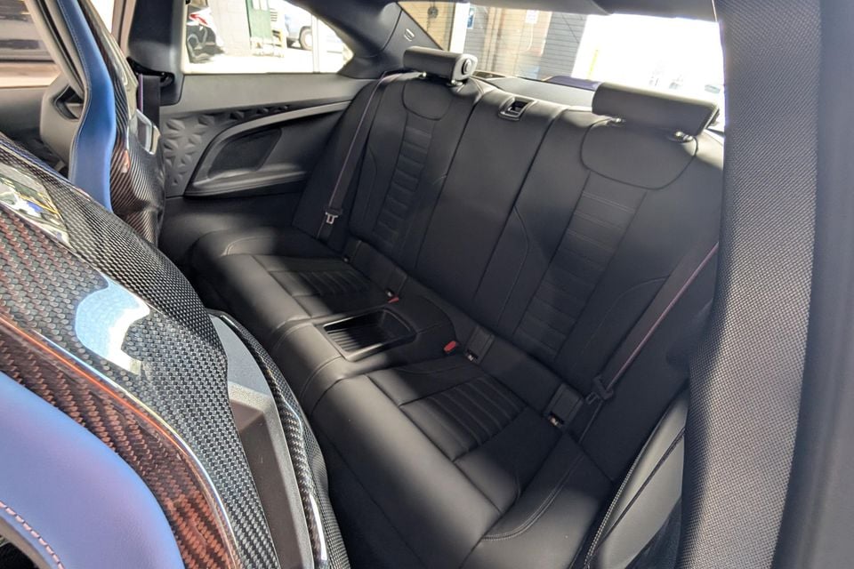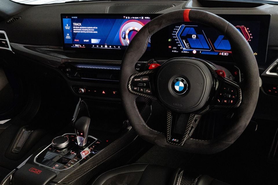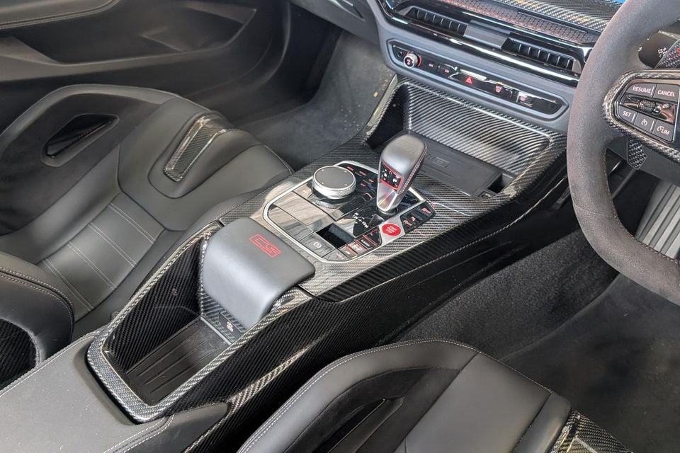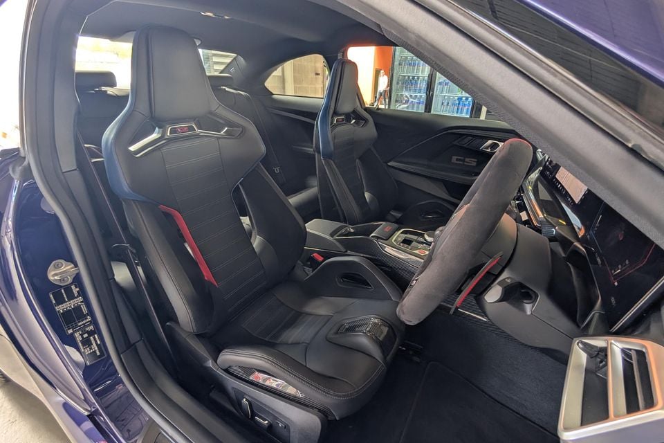 The most obvious CS cabin upgrade is electrically adjustable M carbon bucket racing front seats, a $9231 option on the regular M2. Their leather and Alcantara trim is interrupted by bare carbon-fibre sections and cut-outs with illuminated CS logos on the backrests.