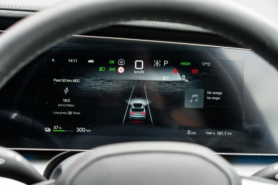 While I applaud the Chinese brand for not going the Tesla route in relegating all the driving info to the central touchscreen, the lack of configurability and the large amounts of blank space aren’t to my tastes.