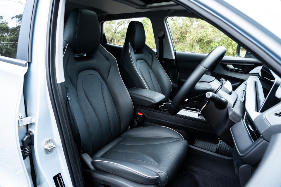 As with Chery’s other products, the glossy screens and leather-look surfaces with contrast top-stitching initially present as premium, especially at a price point known for dour design and hard, scratchy plastics.