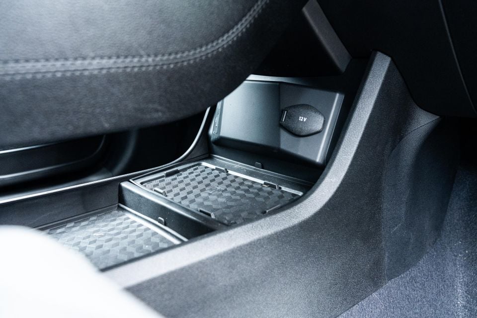 Storage is more positive and there are plenty of nooks and crannies to store your odds and ends, including a shelf under the centre console, decent sized door bins, and a cubby under the front armrest. The cupholders are good too, though the little slot to stow your phone isn’t deep enough to hide it out of sight, nor is there a wireless phone charger.