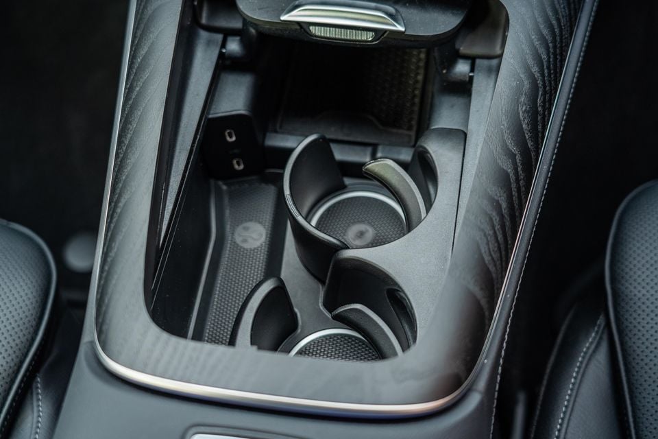 Leaving the middle seat empty also allows outboard riders to access the full breadth of rear amenities, including a centre armrest with cupholders, USB-C outlets, air vents, and a small storage nook built into the back of the centre console.
