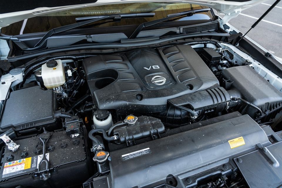 The Patrol retains a burbling naturally aspirated V8 for now, at least until the Y63 generation introduces a new twin-turbo petrol V6 in its place.