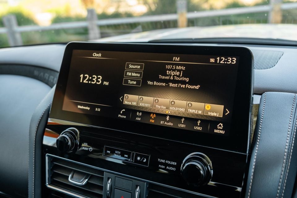 The Patrol received a major interior tech update earlier this year, adopting a new infotainment system from the US-market Nissan Armada. The 12.3-inch centre screen looks modern enough, boasting bright, crisp graphics and decent responsiveness to touch inputs.