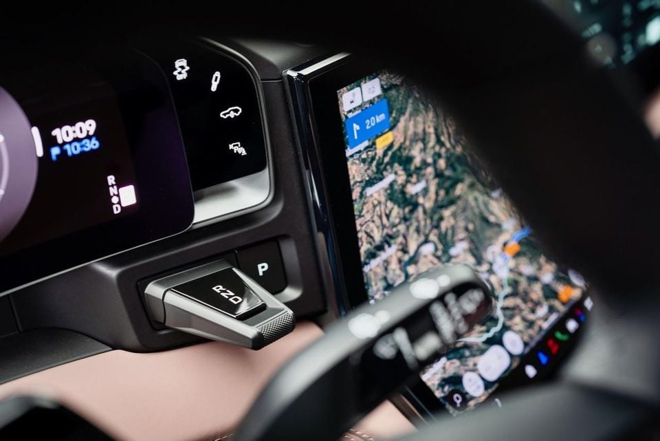 The star of the show here is the so-called ‘Flow Display’, a large OLED screen in the centre of the dash. This is a curved panel, although more accurately it has a lateral kink in it about a third of the way up, with graphics smoothly flowing from the lower, angled portion of the display to the upright larger section above.