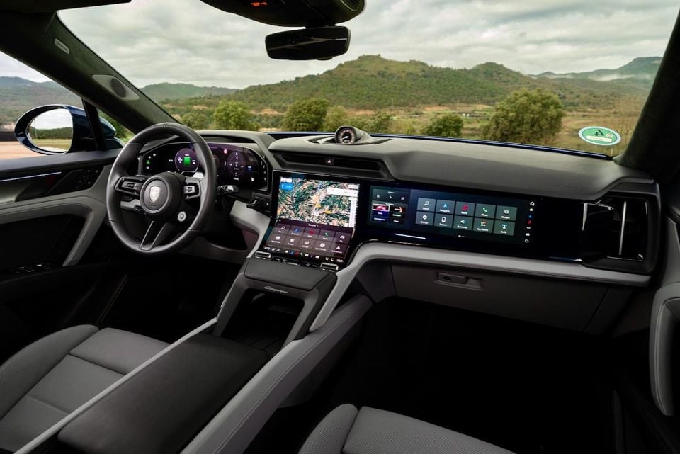 As befits a technologically advanced EV, the interior of the Cayenne Electric is predicated on a three-screen digital setup which Porsche says is 50 per cent larger by area than anything found in the Mk3 variant of the SUV.