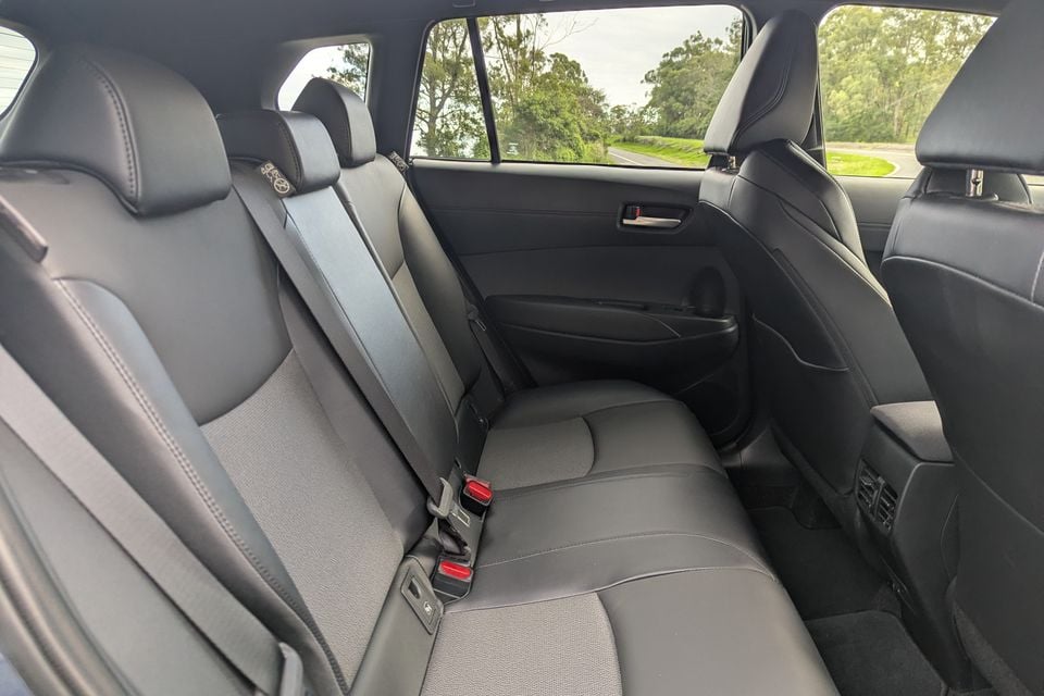 Step into the back and yes, the Corolla Cross is noticeably smaller than a RAV4. Nevertheless, this is still one roomy small SUV, and there are plenty of amenities.