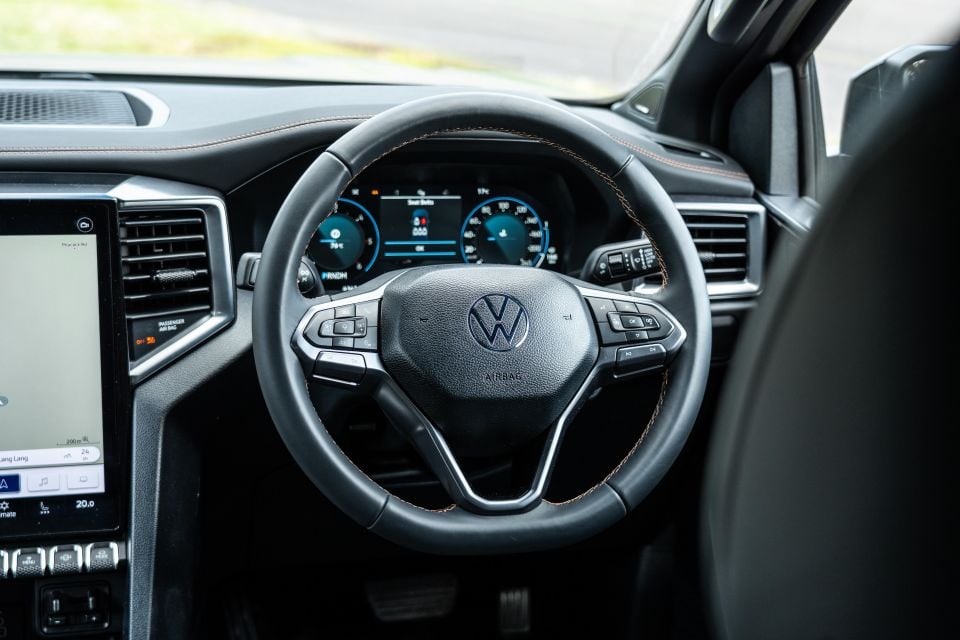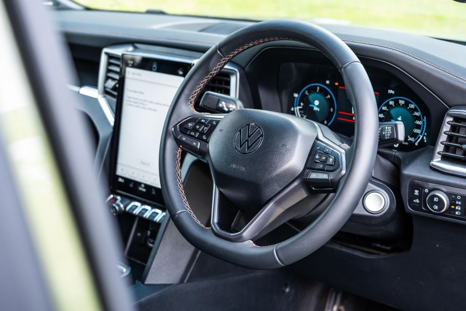 I do appreciate the fact that there’s a real Volkswagen steering wheel being used, rather than just recycling the Ranger’s tiller and slapping on a VW airbag cover, which really helps sell the ute as a Volkswagen product.