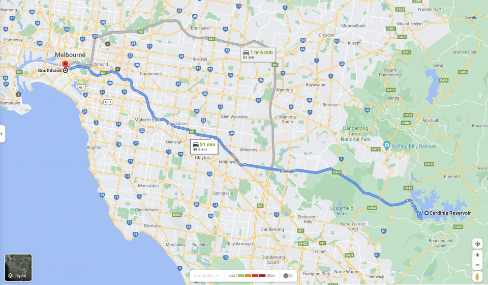 Our test loop is a 45km drive from Melbourne’s CBD (where the CarExpert office is located) with four checkpoints along the way. The final checkpoint is in a location with no LTE or phone reception.
